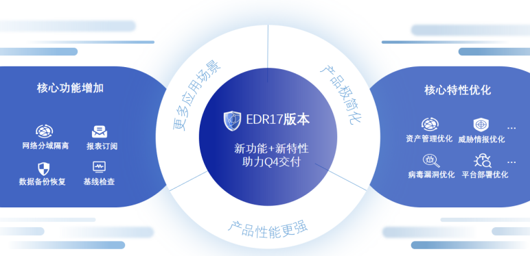 EDR V2.0.17版本于2021年12月24日重磅发布,此版本不仅推出了网络分域、基线检查等全新功能、并且针对原有的核心功能进行深层次优化—令“强点更强”。