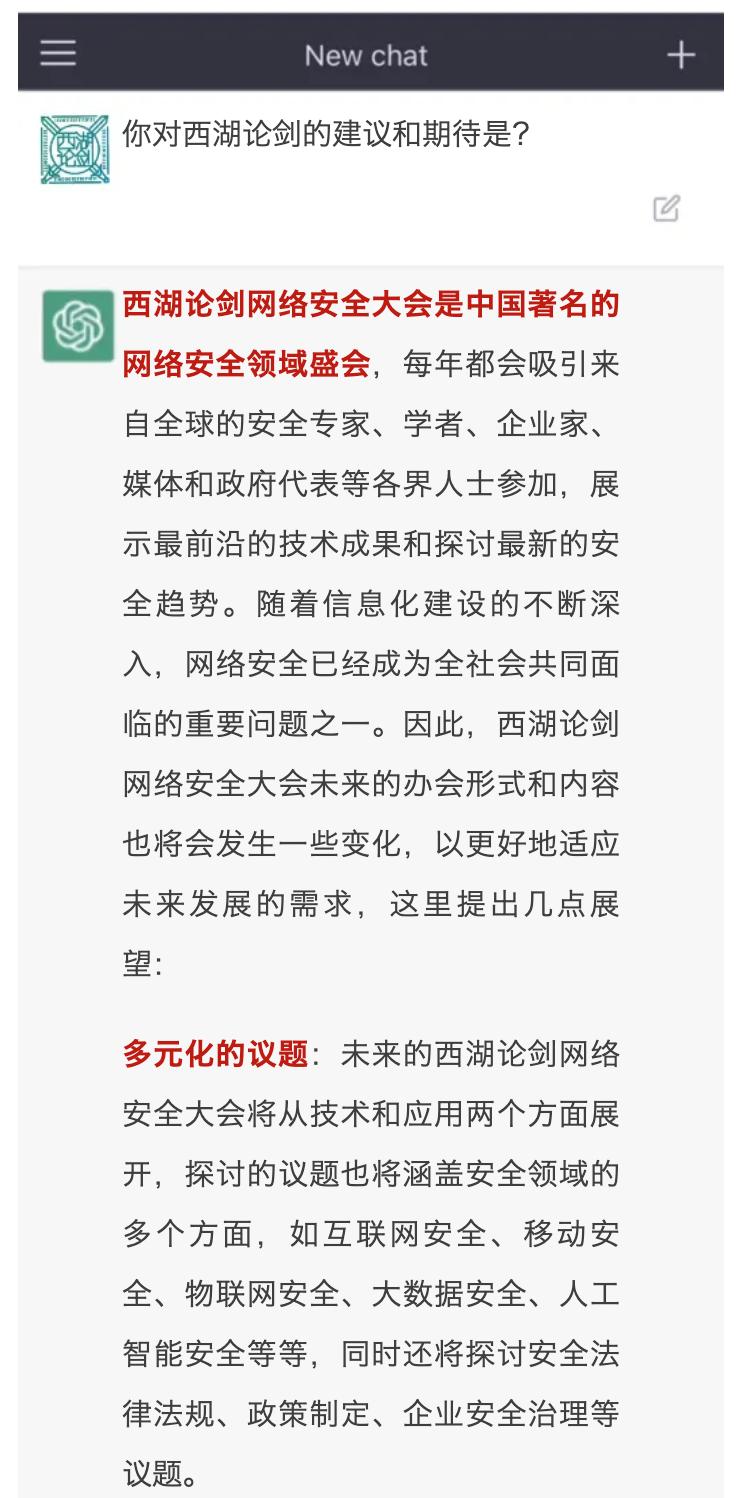 ChatGPT和我谈了它对2023西湖论剑的期待,你呢?