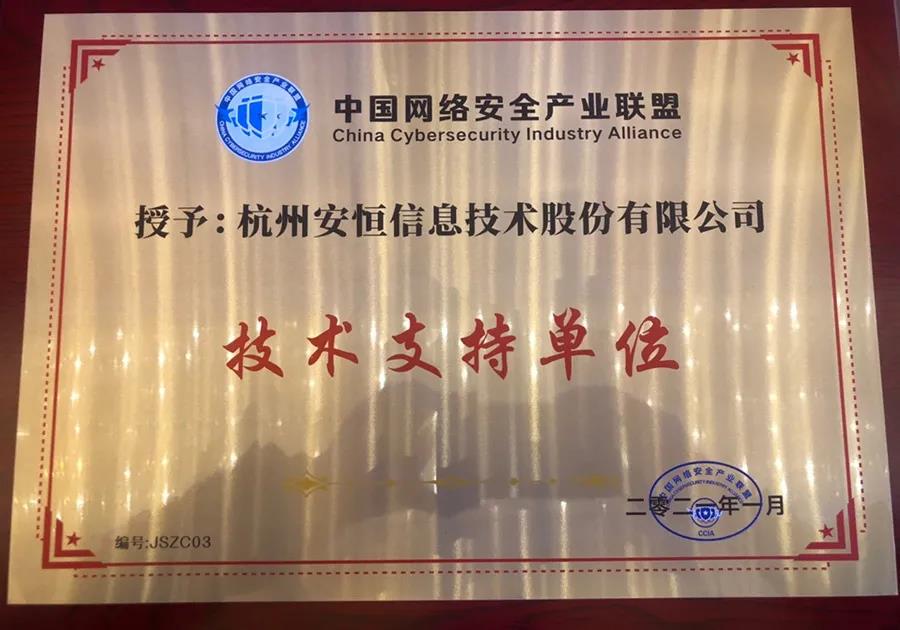 安恒信息荣获中国网络安全产业联盟“突出贡献单位”和“技术支持单位”称号