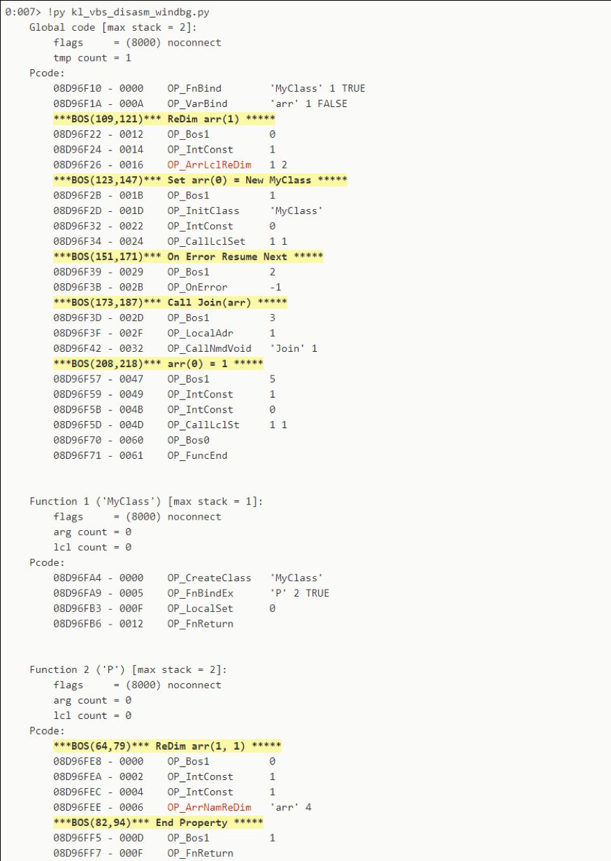 卡巴斯基实验室的Boris Larin曾写过一篇关于vbscript虚拟机的文章,并且开源了相关的调试插件。