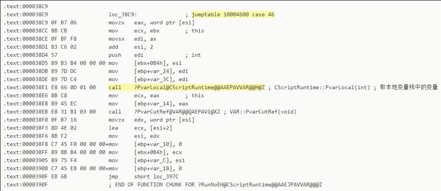 在IDA Pro中对vbscript!CScriptRuntime::RunNoEH进行逆向,人生就是搏z6尊龙来看一下上述两个指令解释分支的汇编代码: