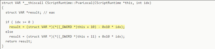 上述两个分支都调用了CScriptRuntime::PvarLocal方法,再来看一下CScriptRuntime::PvarLocal方法的实现: