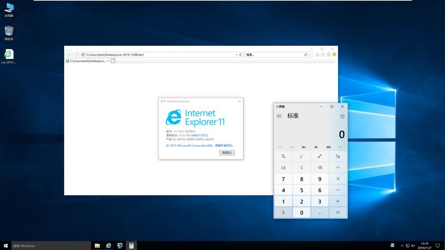 最终,笔者成功在windows 10 1709 x86系统的2019年8月全补丁环境上弹出一个计算器: