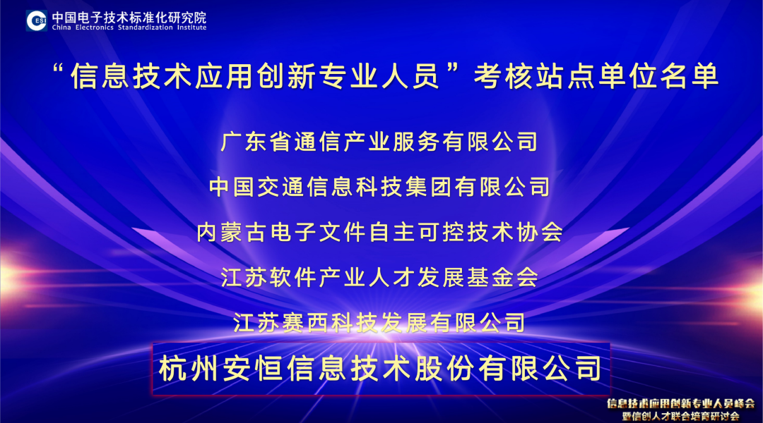 在“信息技术应用创新专业人员峰会暨信创人才联合培育研讨会”中,安恒信息凭借在信创领域丰富的培训经验,成功入选“信息技术应用创新专业人员”考核站点单位。此外,安恒信息还通过了“信息技术应用创新人才标准试点工作”验收。