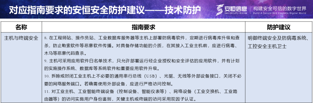 安恒信息深耕工业信息安全领域数年,面向使用、运营工业控制系统的企业提供贯穿IT/OT的融合性工业信息安全解决方案,覆盖工业企业在数字化转型过程中的架构与边界安全、上云安全、应用安全、工业数据安全、主机与终端安全等不同安全场景,协助工业企业用户做好工业控制系统网络安全面临的突出问题,安恒信息通过多年技术沉淀,形成符合《工业控制系统网络安全防护指南》要求的安全防护体系,协助工业企业进行安全建设。