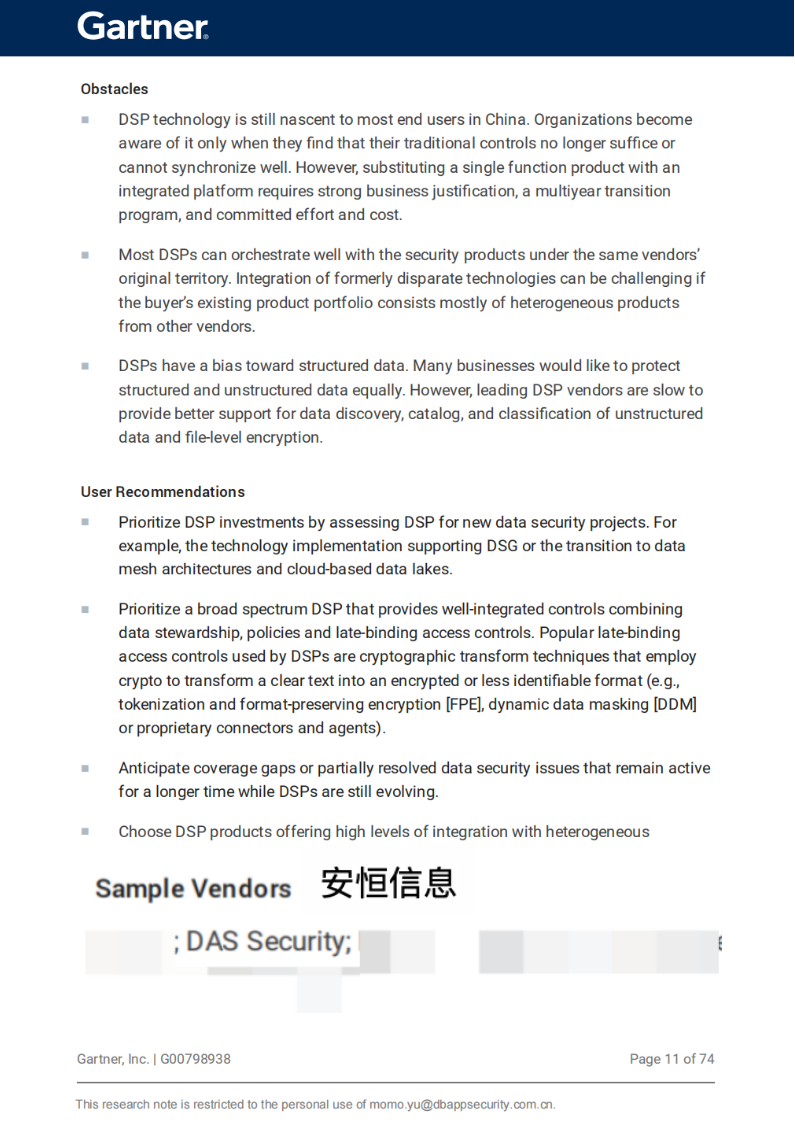 ➣Gartner数据安全管理平台推荐厂商