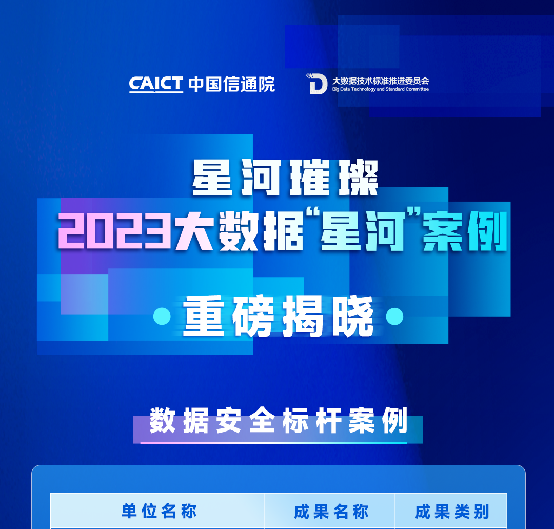 中国信息通信研究院和中国通信标准化协会大数据技术标准推进委员会(CCSA TC601)共同组织大数据“星河(Galaxy)”案例征集活动,安恒信息荣膺数据安全、数据要素流通两大方向三大奖项。