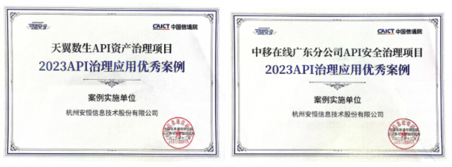➣两大案例获得信通院2023年API安全治理应用优秀案例