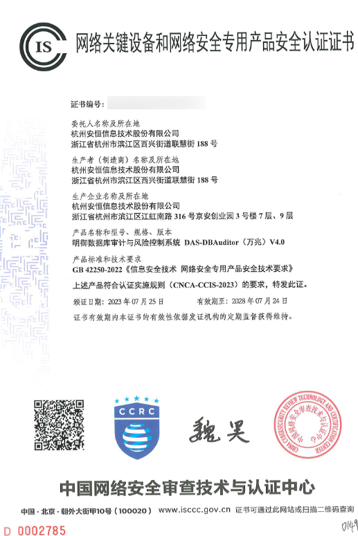 明御数据库审计与风险控制系统: