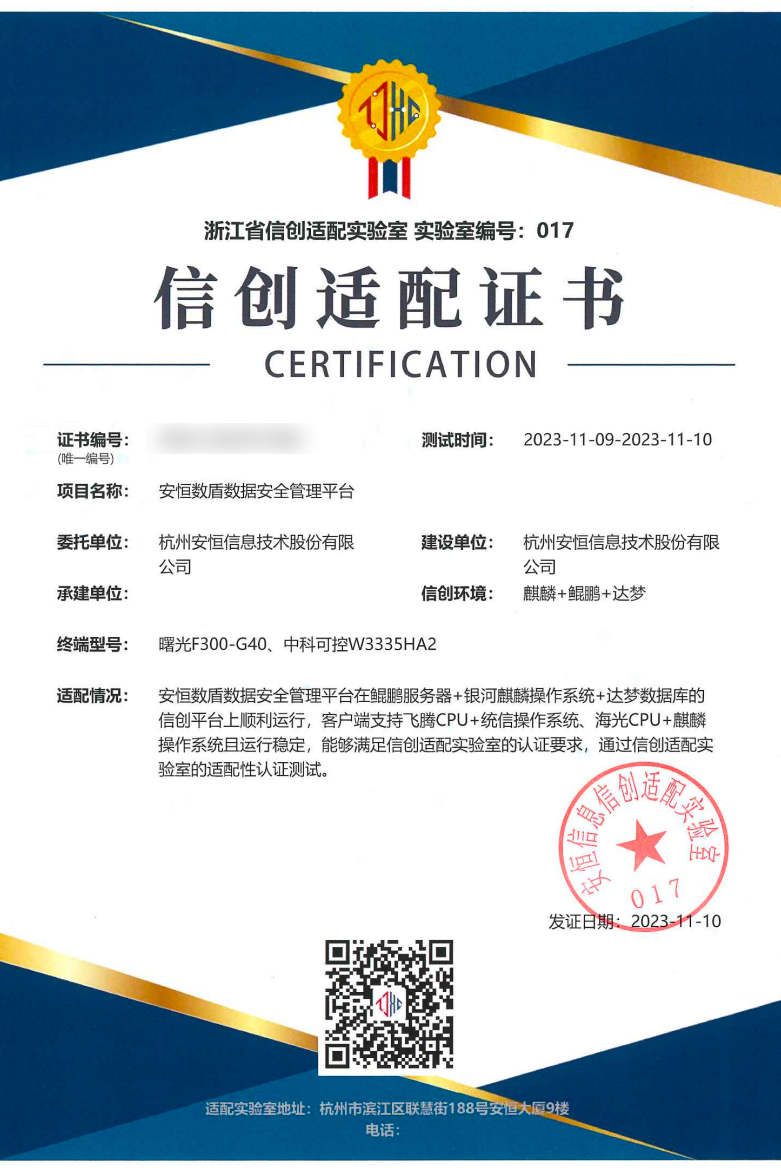 ➣浙江省信创适配实验室:信创适配证书