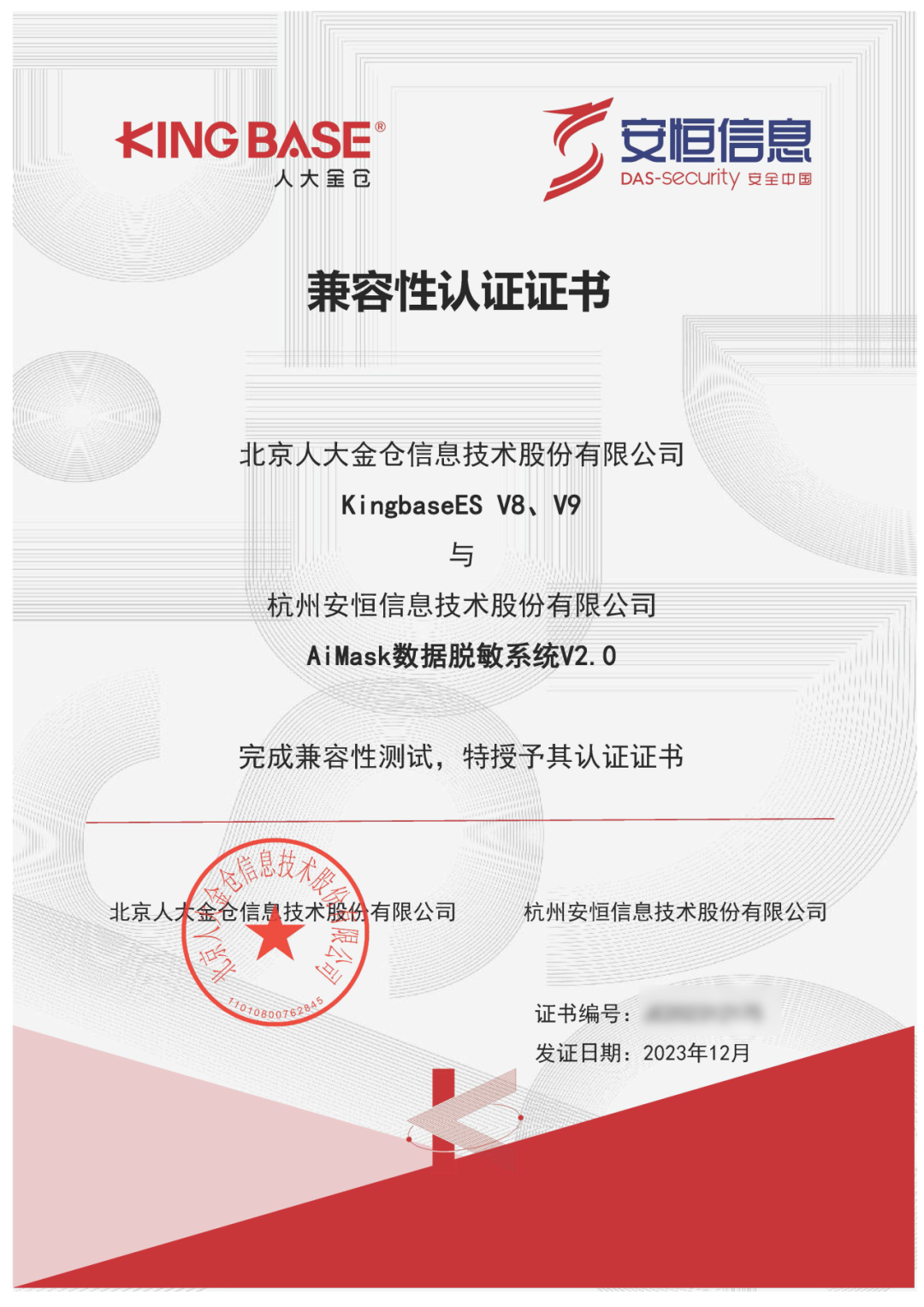 1. 通过信通院《数据脱敏能力检测》(2023)