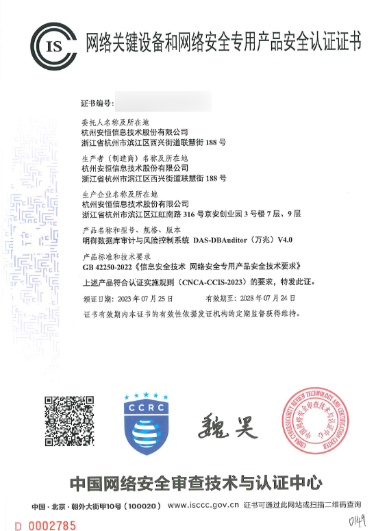 明御数据库审计与风险控制系统完成了去centos的工作,使用安恒自研的操作系统DAS-OS-E,实现了操作系统国产化。