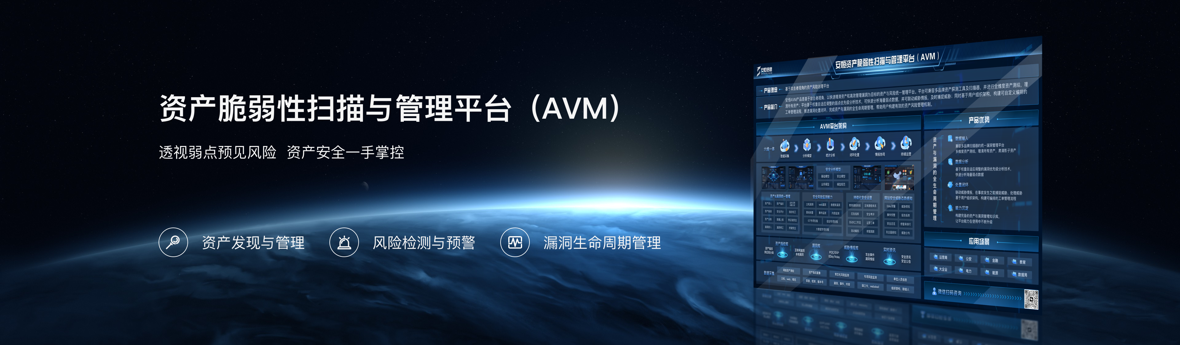 平台集资产与风险统一管理于一体,快速理清资产和高效管理漏洞;采用权重自适应技术分析弱点优先级,联动威胁情报及时捕捉风险;构建灵活工单流程推进漏洞处置闭环,覆盖资产与漏洞全生命周期,助力用户构建全链条资产风险管理机制,提升管理效能。 -